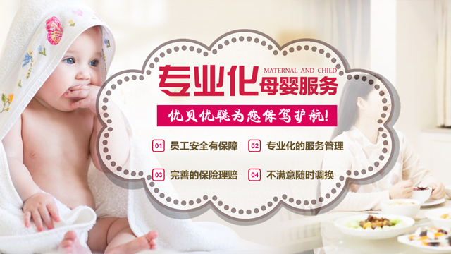 北京優貝優聰家政服務有限公司是專業的月嫂和育兒嫂公司,集婦幼保健咨詢和母嬰服務為一體的專業性服務機構。主要提供孕產期保健咨詢和母、嬰護理服務,并致力于嬰幼兒科學養育和早期教育的研究。公司聘請了多年從事婦幼保健工作和教育工作的資深人士擔當顧問,由畢業于著名醫科大學的婦幼專家主持,擁有一支經驗豐富的高素質管理人員和母嬰護理服務人員的隊伍。